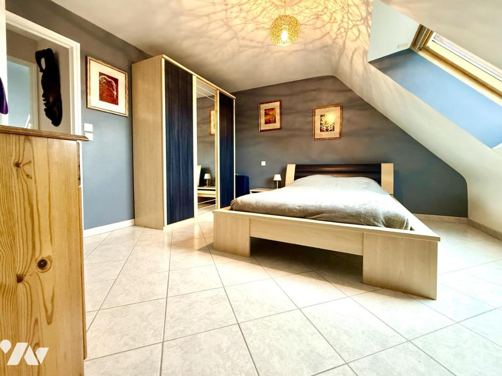 A l’étage une mezzanine dessert 4 chambres spacieuses, une salle d’eau avec WC indépendants.
