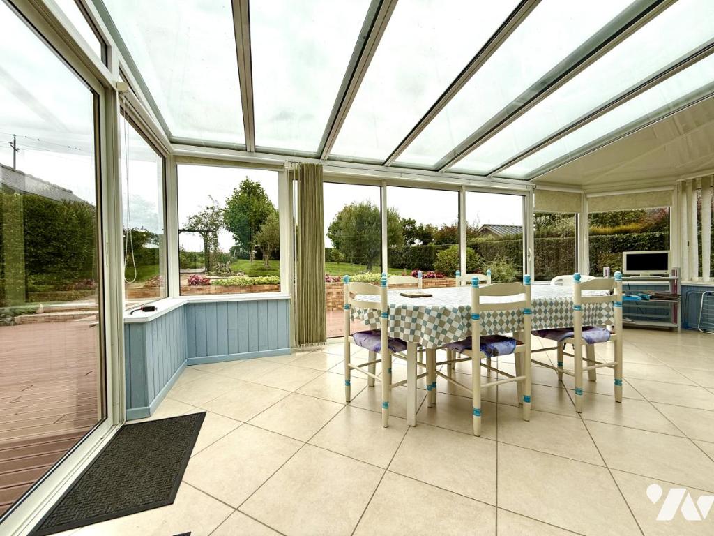 Elle vous accueille au rez-de-chaussée avec une belle entrée avec placard, un salon séjour avec cheminée insert, une cuisine aménagée et équipée, un cellier, une belle véranda chauffée, une agréable chambre, une salle d’eau avec WC séparés et une buanderie.